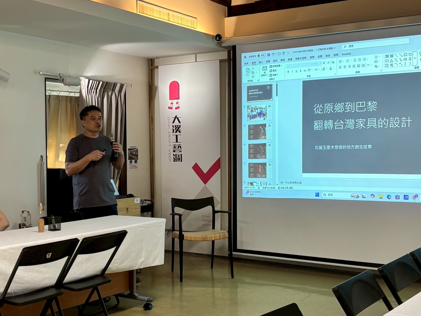 花蓮木想傢創辦人王嘉納先生,在花蓮玉里鎮為原鄉帶來創生夢想,每年製作超過200件精緻手作家具作品,多次受邀參與國際展覽,讓來自花蓮玉里的工藝技術站上世界舞台。今年更是帶領地方青年製作相思木扶手餐椅,獲2025年德國iF設計獎。王老師於講座分享如何透過手工家具製作創造在地就業、培育青年職人,透過製作手工家具創造在地就業的故事激勵人心,足為大溪邁向工藝小鎮青年培育的成功案例參考。